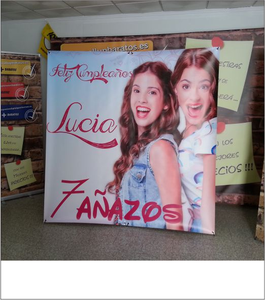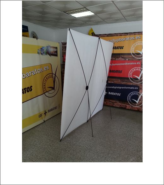 El Cartel del fotocoll esta realizado en lona de pvc fundida satinada con impresión digital de alta calidad, incluye 3 estructuras en X de fibra de vidrio para conseguir la tensión de la gráfica. (sin arrugas)
