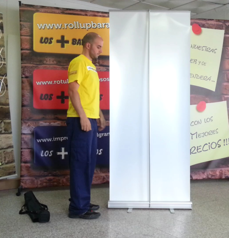 La estructura del roll up esta fabricada en aluminio y la gráfica se realiza en lona de pvc fundida satinada de 450 gr. con impresión digital de alta calidad.