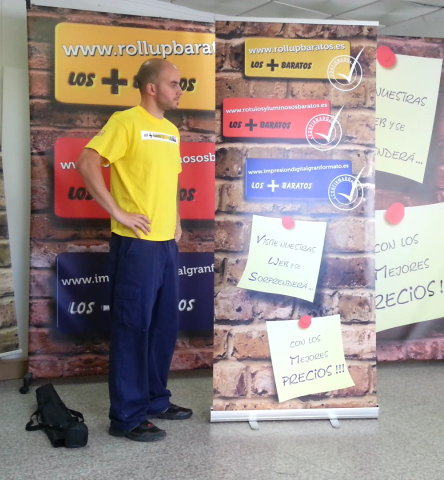La estructura del roll up esta fabricada en aluminio y la gráfica se realiza en lona de pvc fundida satinada de 450 gr. con impresión digital de alta calidad.